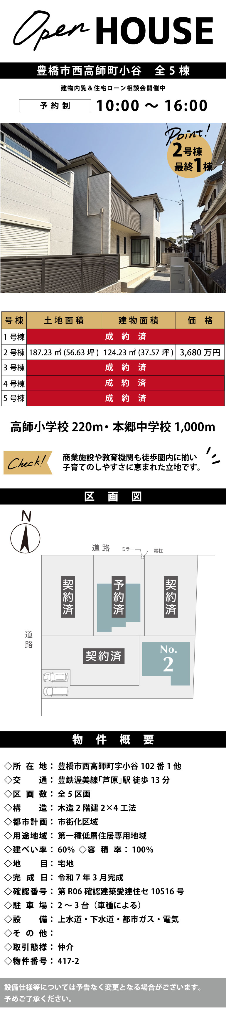 ホーム 物件情報 豊橋市西高師町字小谷 建売住宅 高師小学校区 お気に入り物件一覧 豊橋市西高師町字小谷 建売住宅 高師小学校区 お気に入りに登録する 解除する この物件の 資料請求 来場予約 基本情報 コンセプト 家づくりのご質問・ご相談をLINEからも受付中♪お気軽にお問合せ下さい 一覧へ戻る 0532-46-7833 受付/9:00~18:00 定休日/なし(夏季休暇・年末年始を除く) お気に入り一覧を見る この物件の来場予約 この物件の資料請求 電話