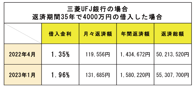 金利が急上昇している訳ではなく、じわじわと金利が上がっています。最低金利1.11%だった2019年9・10月より約3年程かけてじわじわと0.5%以上金利が上がっています。