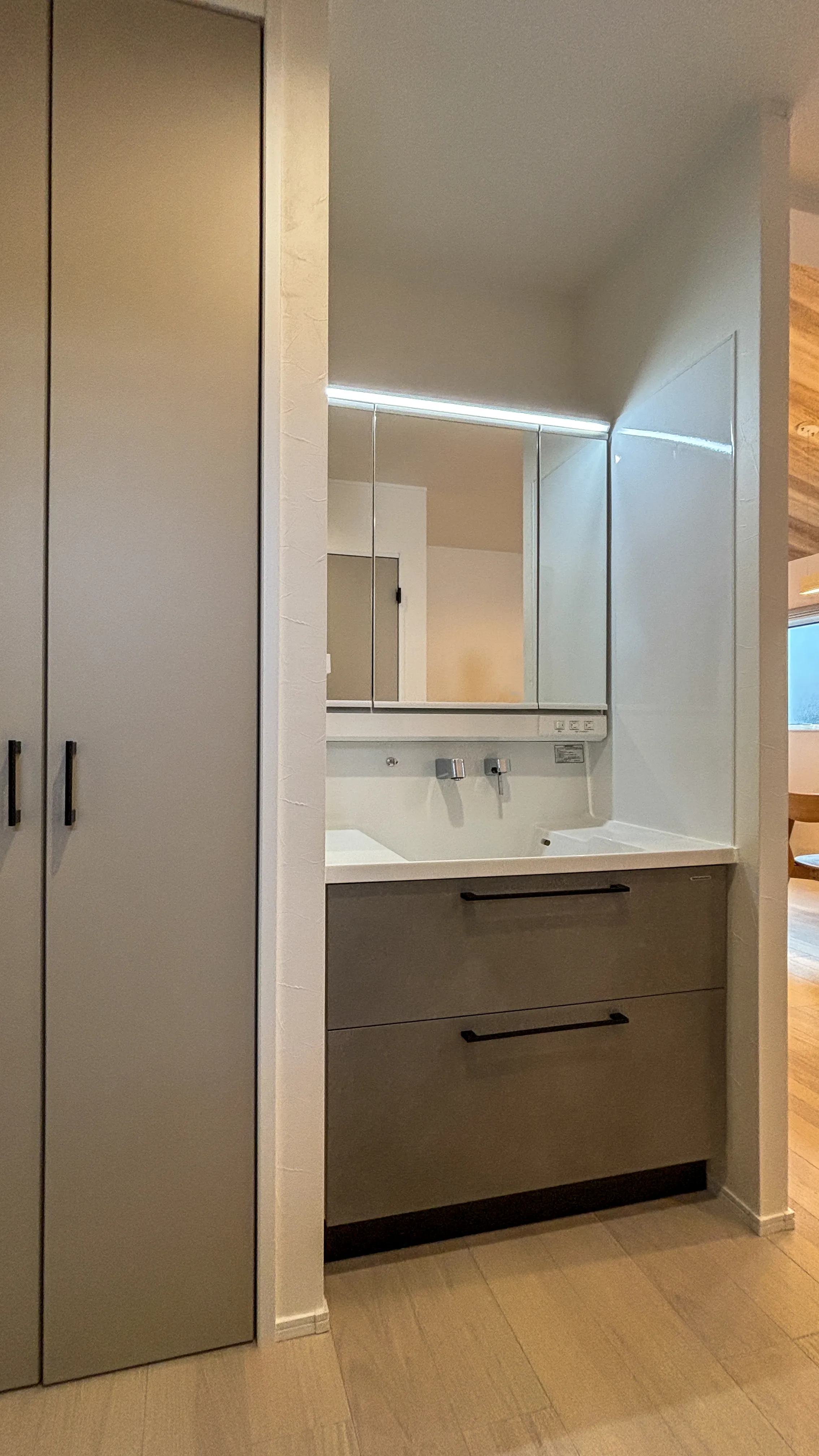 "おうちランドリー"乾太くん等々充実の豪華仕様。もちろんシャワートイレやほっカラリ床のTOTO製ユニットバスなども標準装備。外壁も太陽といえば"ガルバ"今回はコゲチャの落ち着いた仕上がりです。規格型建売住宅では見たことの無い特徴的な大屋根の外観デザインなどオンリーワンレディメイドハウス【提案住宅】は「えっ⁈これが建売?」というデザイン性と暮らしやすさを兼ね備えた建売です。