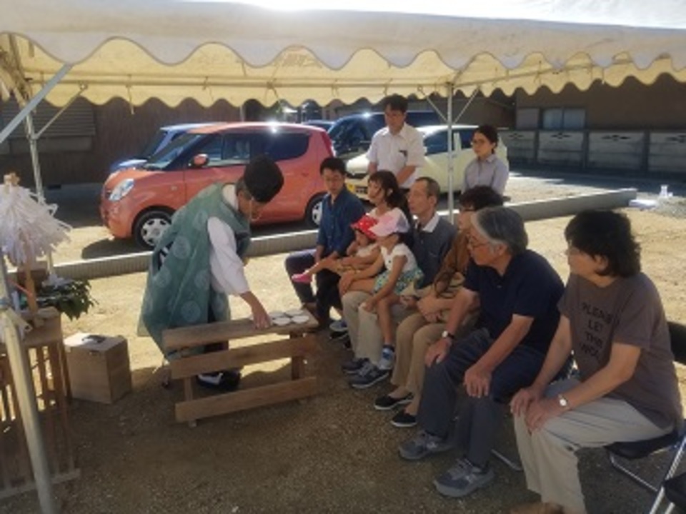 晴れ過ぎて季節外れの暑さ...ご両家集合で工事の安全を祈願しました。