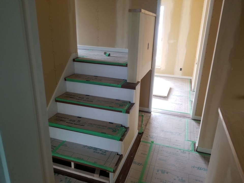 床の塗装をしています。ナラの床材にライトグレーの塗料は相性抜群で木目を生かしつつ、良い色味を出してくれます。しっかりと時間を置き、乾燥させます。
