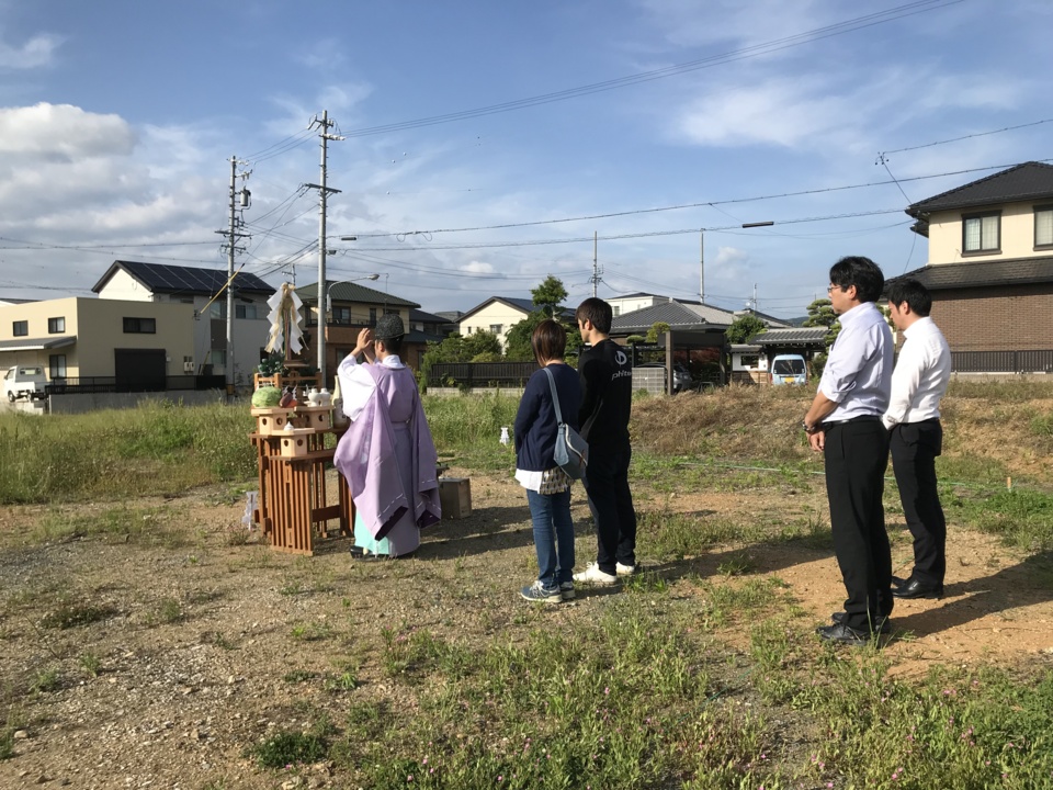 本日地鎮祭を執り行いました。A様誠におめでとうございます!地鎮祭はその土地に住む神様を祭り、工事の無事を祈ります。A様にご満足いただけるように最善を尽くして進めて参りますのでよろしくお願い致します。